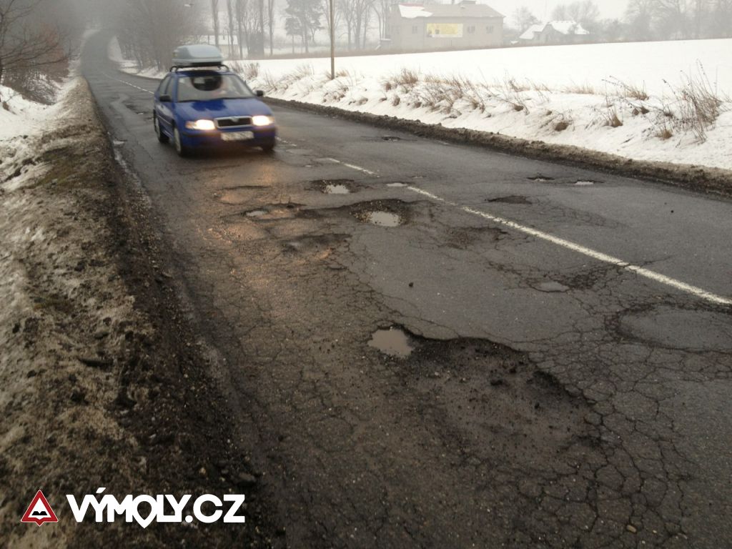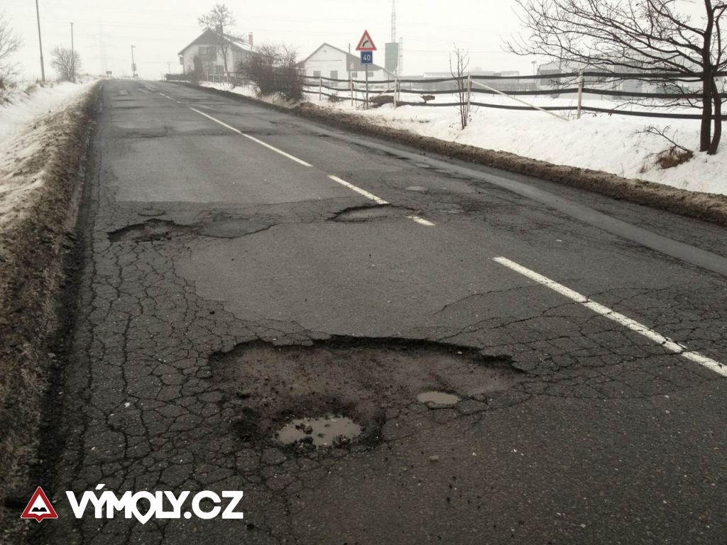 Výtluky v okolí Sirkových lázní. Pro srovnání přiložena 1,5 litrová PET láhev.Poslední kontrola: